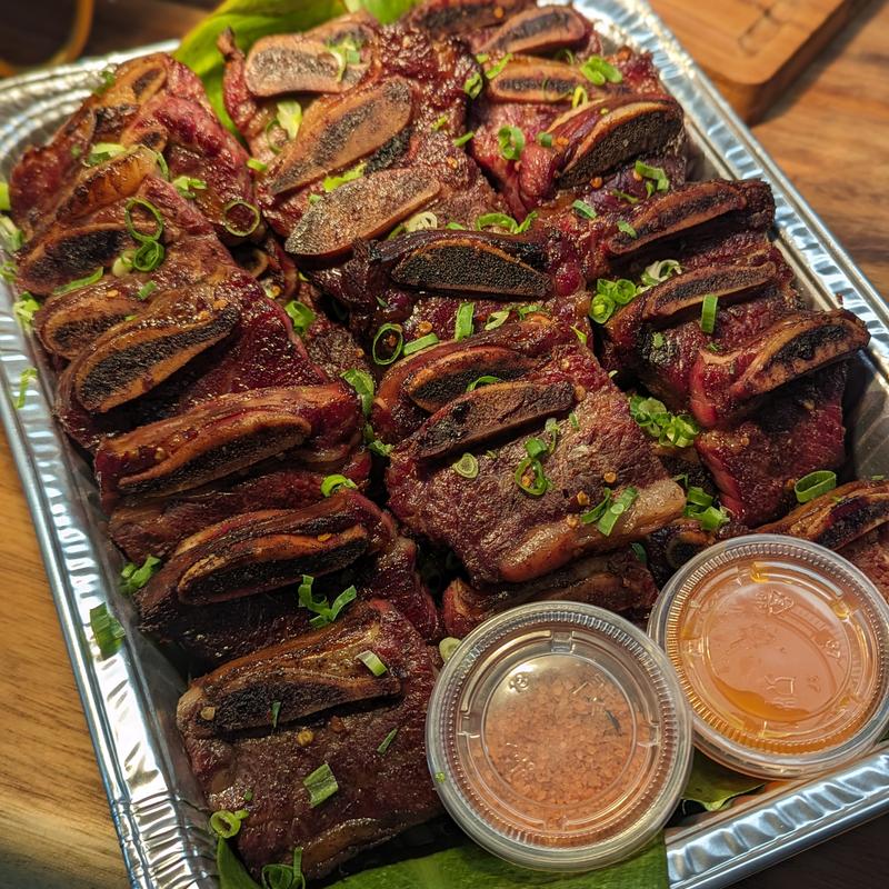 SP $170.00 | LP $400.00 • Air dried & Hawaiian salt rubbed thick cut short ribs, chili peppa watta, pa’akai.