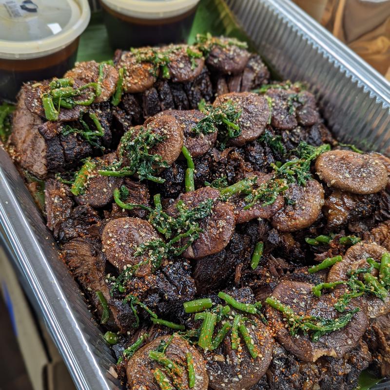 Thick-cut short rib cured with pa'akai, garlic, and chili.