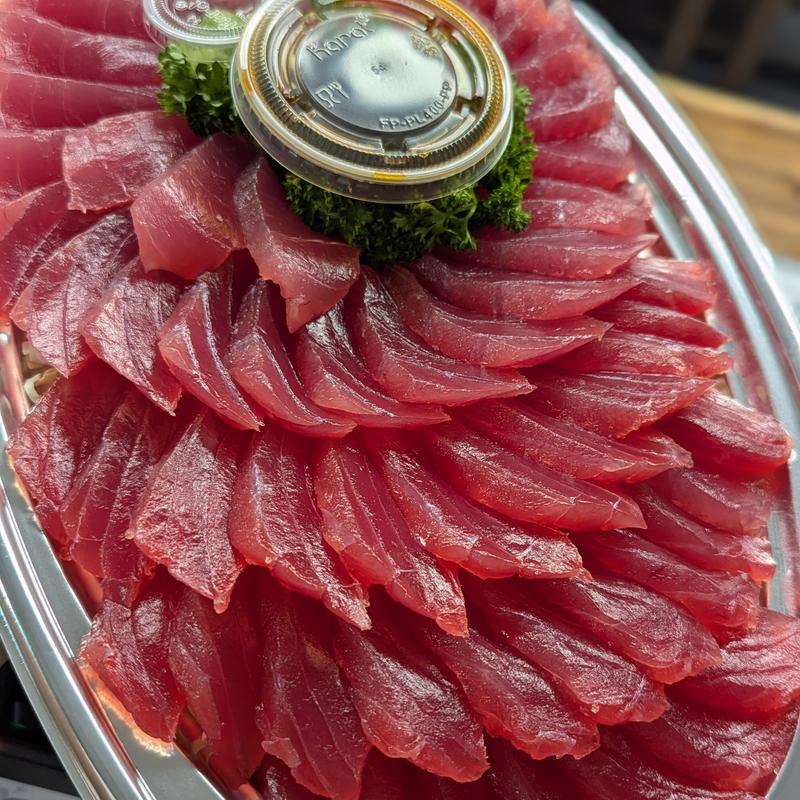 Small Platter 1 - 1/2 lbs (Feeds up to 10) | Large Platter 3 lbs (Feeds up to 20) • Wasabi, pickled ginger, soy sauce, alaea salt.